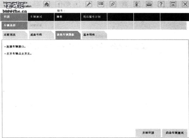 如果自上次调用以来日期已更改,则此外显示一条“ISTA使用提示” 。 在阅读此提示后,请点击“继续”按钮关闭提示窗口。可从启始屏启动一个识别过程。启动一个车辆的识别过程: