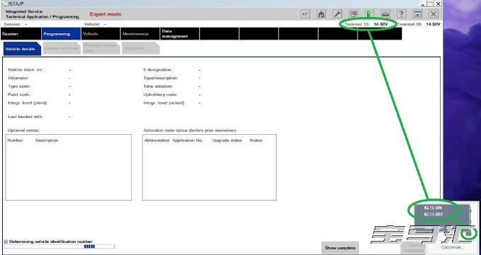 注意:ISTA / P在编程期间要求点火ON / OFF使用位于任务栏通知区域的KL15控制器(右键单击ISTA / P通知图标)。默认设置为“ON”。显然,实际的汽车点火也需要打开/关闭。