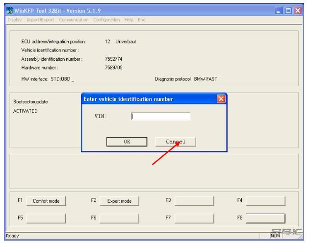 选择取消。不要输入VIN号码。