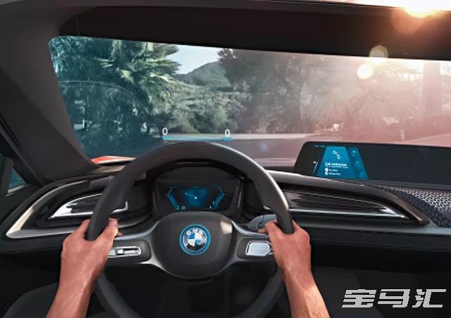 而在2016年的BMW i Vision概念车和BMW Vision Next 100概念车上,抬头显示已经基本取代了常规仪表盘,TA不仅显示车辆基本信息,还可以预判路面情况,展现了一种人车交互的未来前景。