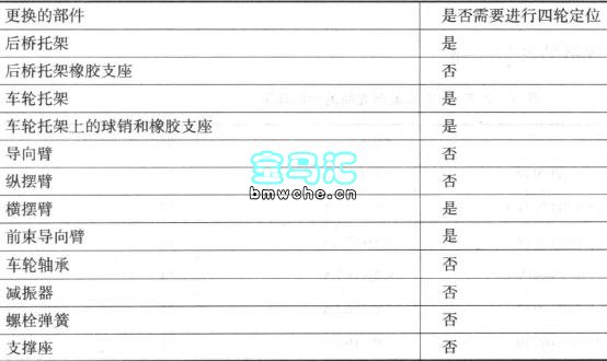 松开F30前桥最栓连接件后需要进行四轮定位的项目表