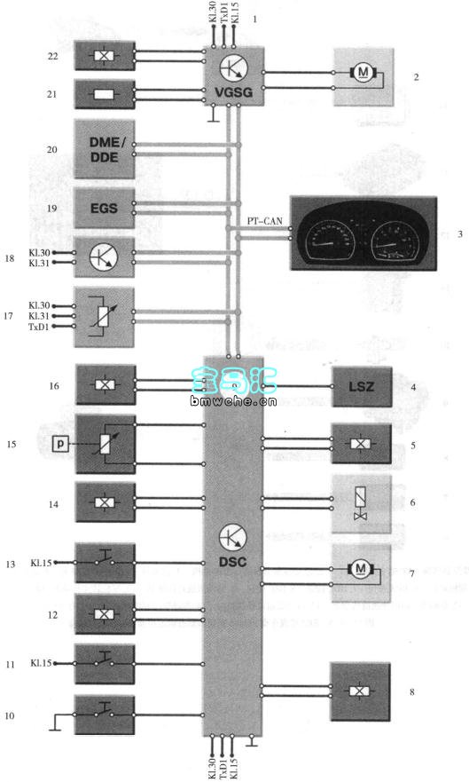 22.电动机位置传感器 KL15.15号电源 KL.30.30号电源 KL.31.接地 PT-CAN.动力总线 TxDl.诊断导线