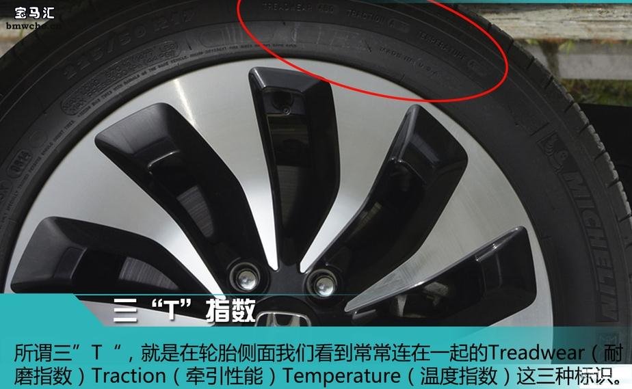 所谓三“T”指数,就是在轮胎侧面我们看到常常连在一起的Treadwear(耐磨指数)、Traction(牵引性能)、Temperature(温度指数)这三种标识。这三个指数来自美国高速公路安全管理局NHTSA的《统一轮胎质量分级标准》即UTQG(Uniform Tire Quality Grade Standards),所有的指数都是按照标准化的测试得出的评价,虽然这些指数对于实际的应用可能没有参考价值,但是由于标准统一,在横向对比轮胎的时候可以派得上用场,这也是各位选择轮胎时候的好帮手。