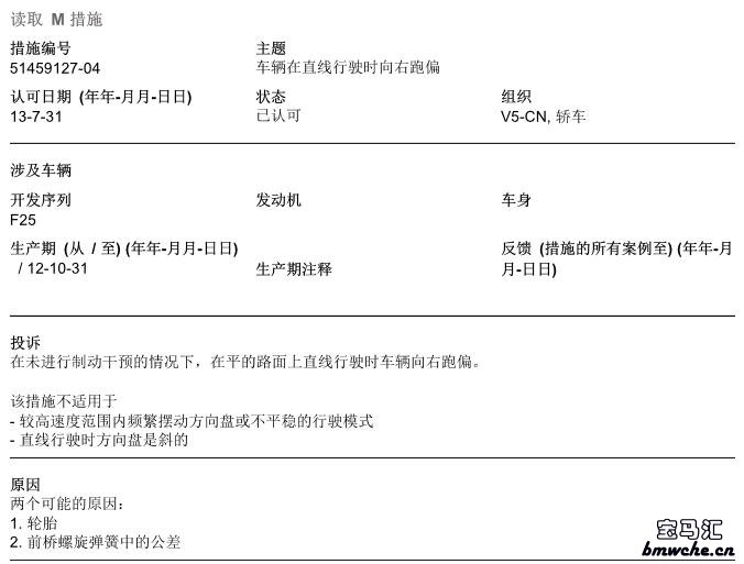 PUMA技术通报-F25车辆在直线行驶时向右跑偏