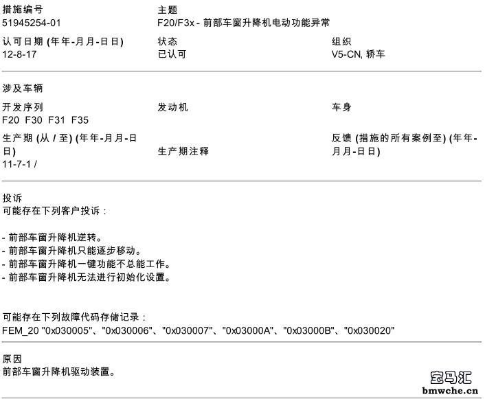 PUMA技术通报-F20/F3X前部车窗升降机电动功能异常