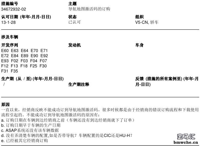 4.不带SA609、 CIC、 HU-H的车辆不需要导航激活码。