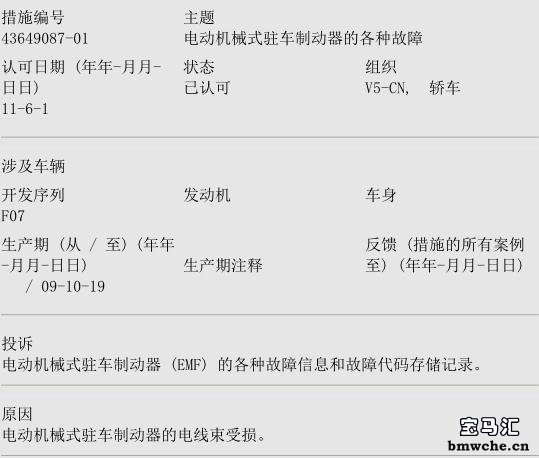 电动机械式驻车制动器 (EMF) 的各种故障信息和故障代码存储记录。