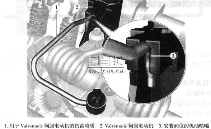 安装该机油喷嘴时必须准确校准。此时无需使用专用工具,小心且牢固地将该城嘴卡在VaLvetronic伺服电动机的导轨内。