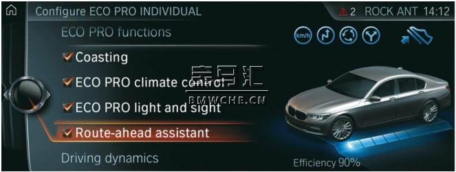可在 ECO PRO 配置菜单内接通和关闭前方道路预测辅助系统。