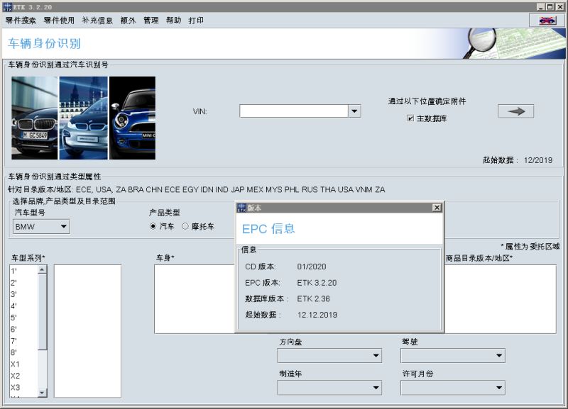 宝马2020年1月份最新配件目录ETK,改版配件资料包括轿车、迷你、摩托车、华晨宝马在内全世界各地车型。