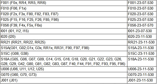 2020年7月下旬更新的最新版 v.4.24.21_PSdZData_Full 用于e-sys编程和刷隐藏,适用于宝马F、I和G系列车型的编程。 v.4.24.21_PSdZdata_Full(完整版) 地址:https://pan.baidu.com/s/1WgskVyYmqxwL7WYlOtenkA