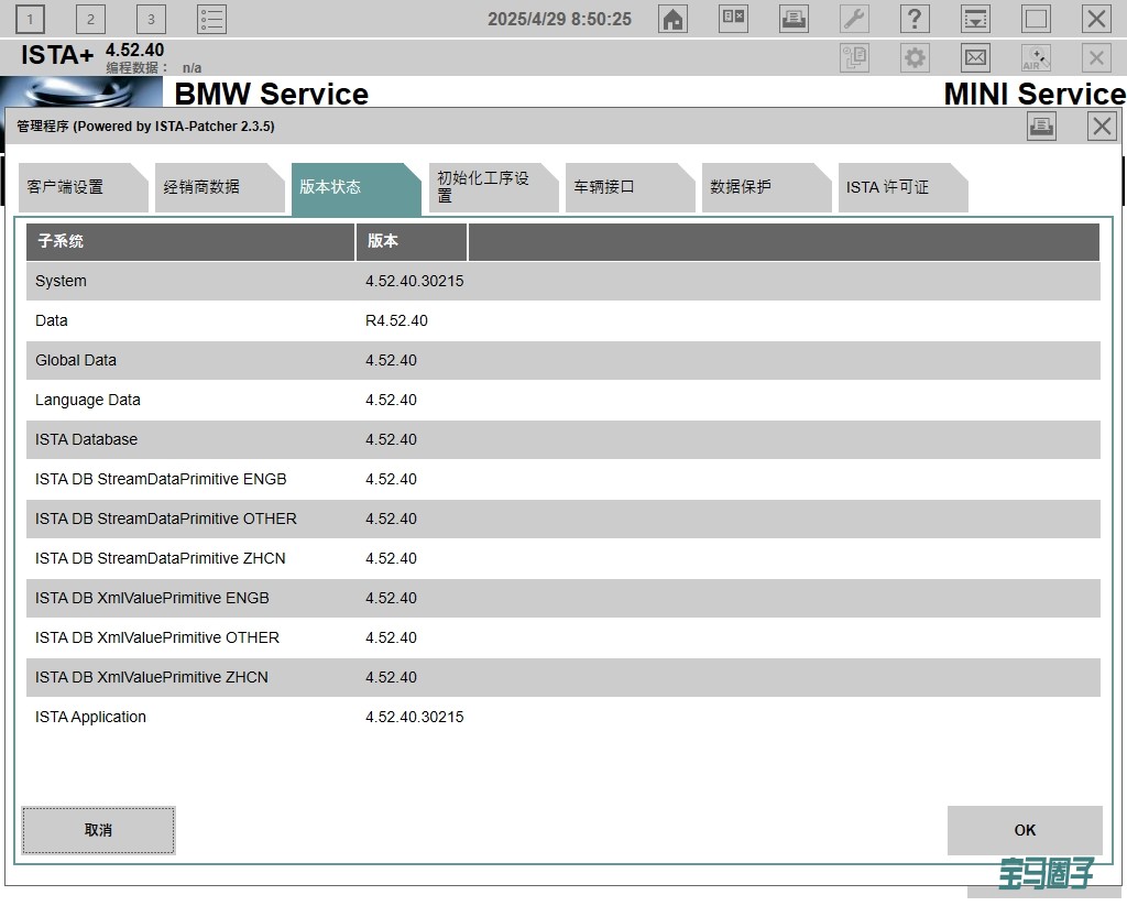 宝马2025年4月上旬更新的最新中文数据库SQLiteDBs 4.52.40,支持新款F、G和I系列车型,以及劳斯莱斯,MINI,宝马摩托。
