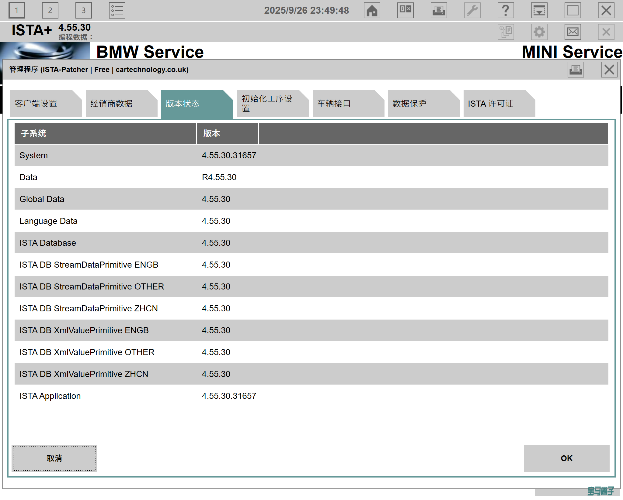 宝马2025年9月下旬更新的最新中文数据库SQLiteDBs 4.55.30,支持新款F、G和I系列车型,以及劳斯莱斯,MINI,宝马摩托。