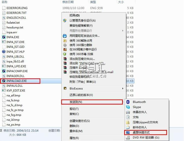 2、进入C:\INPA\BIN目录, 鼠标右击 INPALOAD.exe,创建桌面快捷方式。