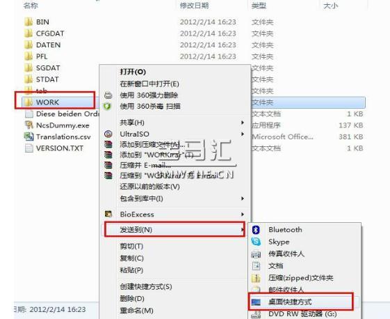 3、进入C:\NCS EXPERT目录,鼠标右击work目录,创建桌面快捷方式。