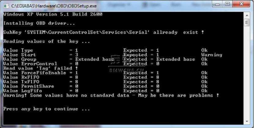 5、进入C:\Ediabas\hardware\OBD,运行 OBDsetup.exe、然后屏幕应该会出现以下的样子,然后关了这屏幕,重启电脑!