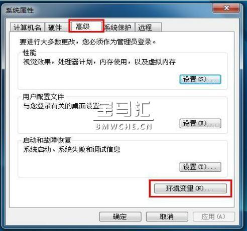 6、返回桌面,右击我的电脑,进入属性,选中“高级”标签,点击 “环境变量”。