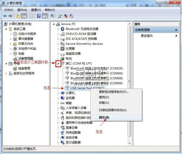 6、选择“端口(COM和LPT)里的USB Serial Port(COM2)根据不同的电脑可能是COM3、COM4 ,需要设为COM1