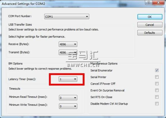 8、注意,COM口一定要设在1上,不能使用3!数据延迟latency也要设为1。