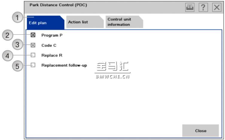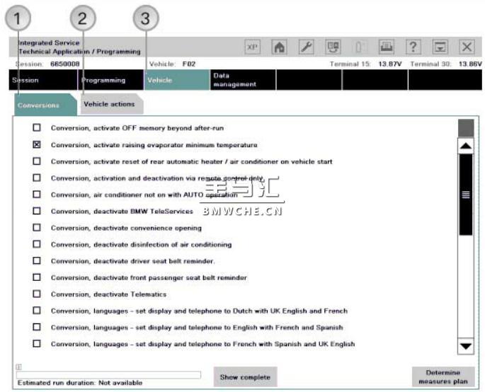 如果 ISTA/P 自动添加了措施 (例如在选择 "更换" 时设码),则复选框显示为灰色不可用。 措施无法手动去除。