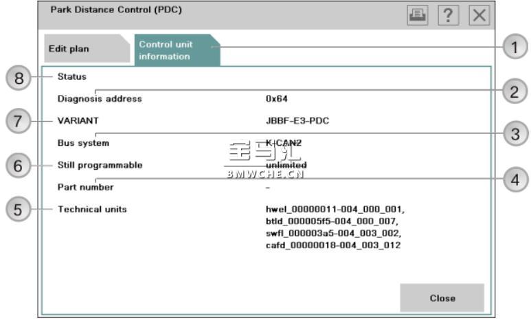 选择控制单元,选项卡 "控制单元信息" 后的截屏: