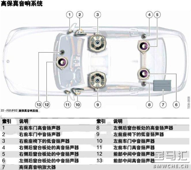 首先我们了解一下宝马原车音响配置,级别从低到高,一共有5种: