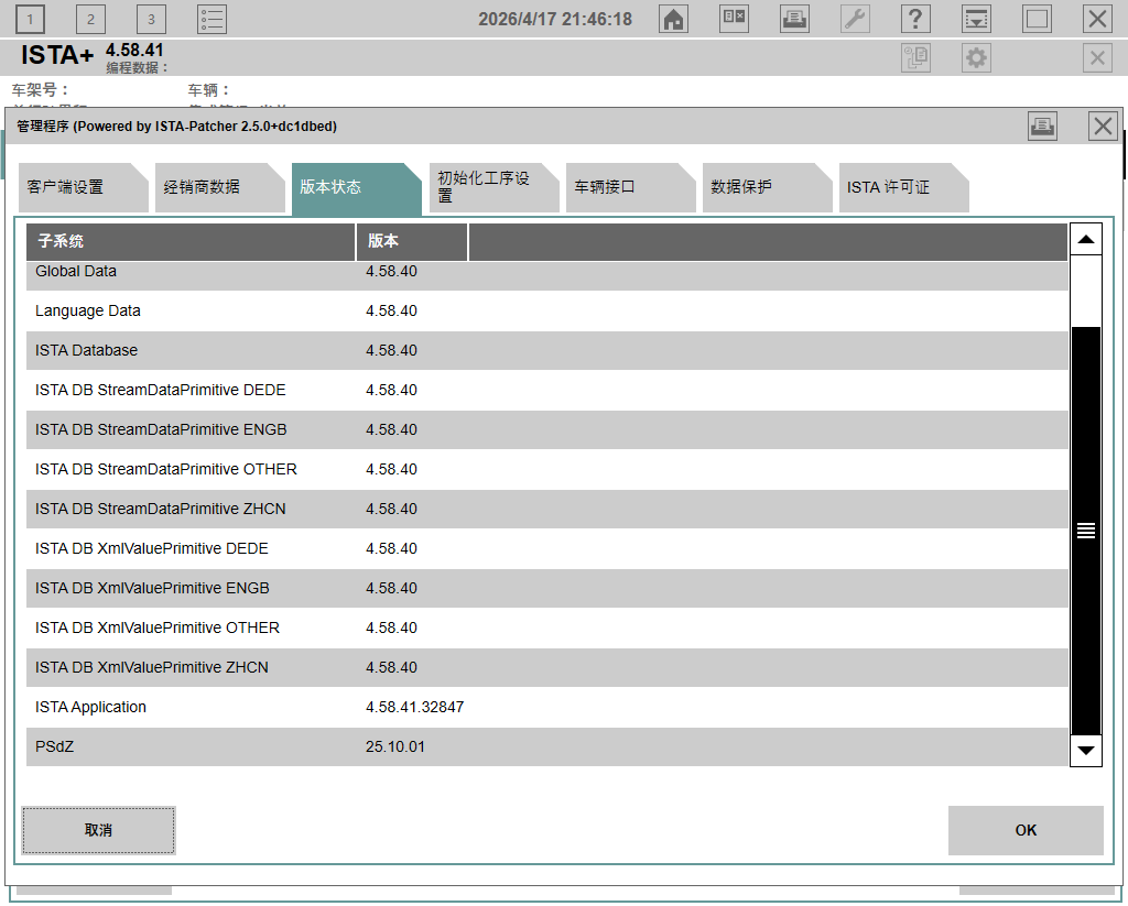 4.58.40版本数据库只能适配的瑞金版本Rheingold(ISTA-D)4.58.41绿色版