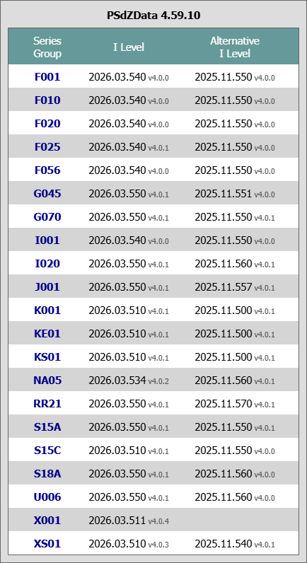 | S18A | 2026.03.540 v4.0.1 | 2026.03.550 v4.0.1 | I Level 从 540→550,版本号不变 |